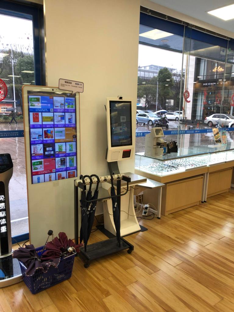 - 擴增實境與電子貨架運用:擴充實境比較多的是用在服飾、彩妝等店家,像是試衣鏡、美妝鏡的運用,電子貨架則是以互動式螢幕,讓顧客在賣場點螢幕就可以購買商品,通常這會以賣場沒有陳列的商品,在互動式螢幕的電子貨架上呈現,讓顧客可以進行購買。