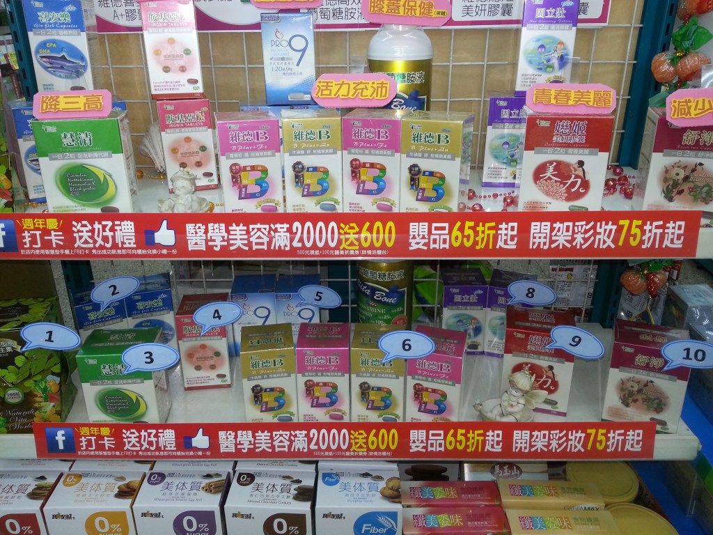 傳統藥局的陳列,通常都是依照業主直覺在擺設,比較沒有在空間上,規劃完善的分區分類,也比較少有促銷活動的專區陳列。